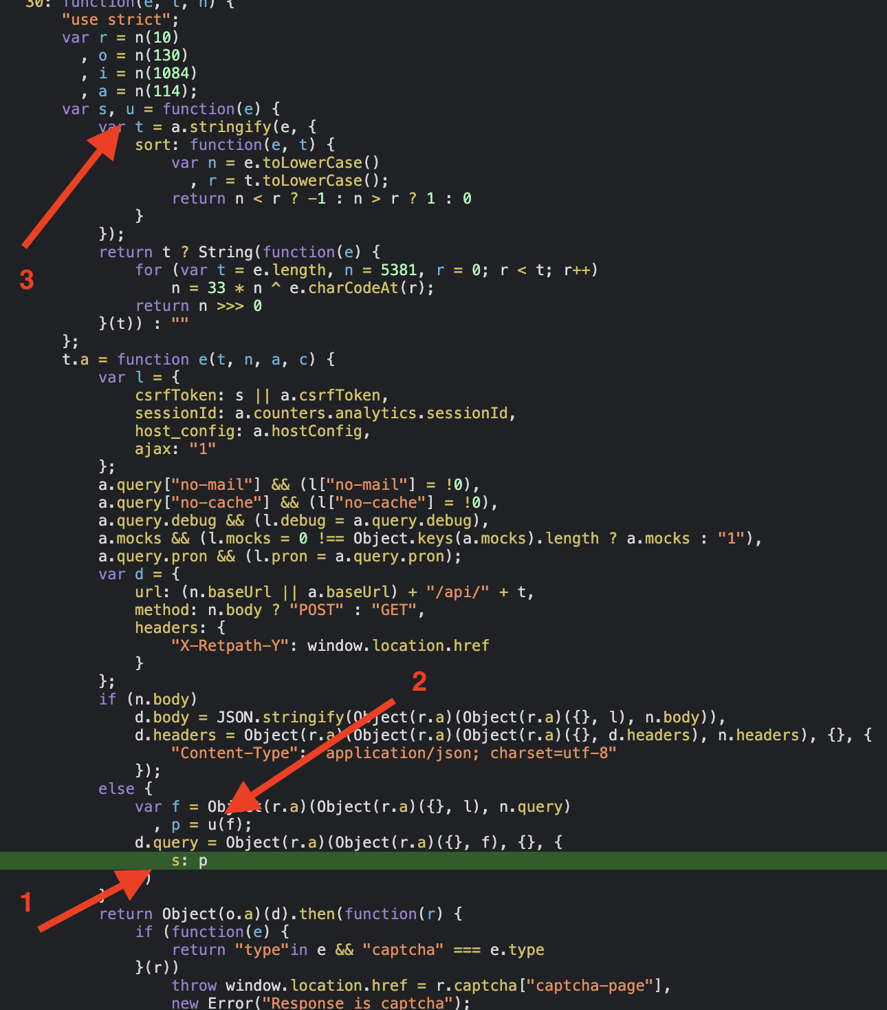 Последний этап это генерация подписи. За это отвечает странный код в цикле for, который является ничем иным как JS реализацией популярного хэш алгоритма djb2.